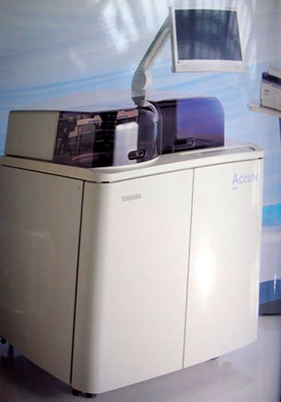 全自動生化儀:我院的生化分析儀是日本東芝TBA-40FR型的全自動生化分析儀,用于檢測、分析生命化學物質的儀器,給臨床上對疾病的診斷、治療和預后及健康狀態(tài)提供準確的信息依據(jù)。