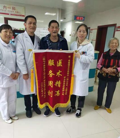 患者,蔡慶良,男,70歲,因“右肺肺癌”于2018年10月04日20:14入內一科科治療,患者入院后中醫(yī)中藥調理后生活質量得到提高,生命得到延長;主管醫(yī)師及時給予飲食及活動指導,同時給予患者較多心理安慰。患者家屬甚是欣喜,他老伴說“自從老頭子發(fā)病來輾轉許多家醫(yī)院,在這里住院期間覺得最溫暖,這里的醫(yī)師護士最貼心,服務最周到,最沒有架子了。”然后在患者本人強烈要求下贈送錦旗,略表感謝之意。