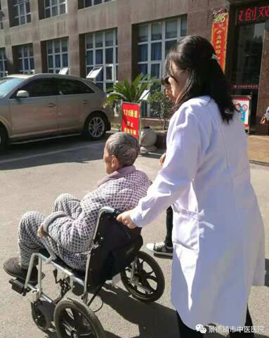 景德鎮(zhèn)市中醫(yī)醫(yī)院內(nèi)一科醫(yī)師陳園,陪同患者做檢查。患者病情較重?zé)o法步行,患者家屬年級(jí)也較大,無法抬得動(dòng)患者;管床醫(yī)師陳園,也是弱女子一個(gè),因?yàn)閻坌?,因?yàn)槭轻t(yī)師,所以心中有股力量讓他可以抬得動(dòng)、推得動(dòng)患者。