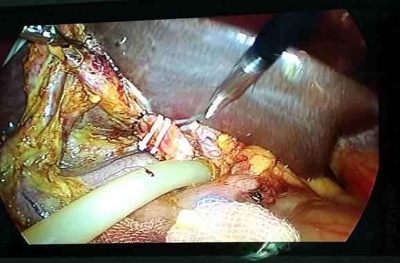 在腹腔鏡下行膽囊摘除術(shù)后膽總管切開取石放置T管引流