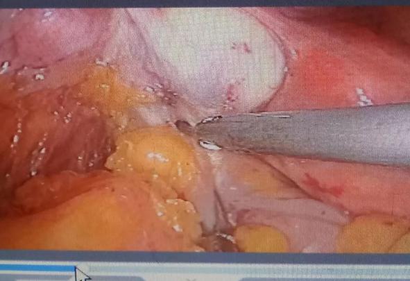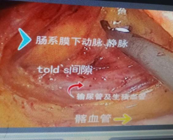 上圖是腹腔鏡下左半結(jié)腸癌根治手術(shù)。