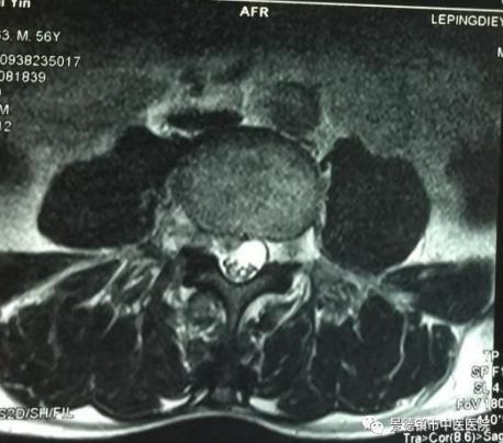 上圖為:MRI提示L4/5中央偏右并向上的椎間盤突出,黃韌帶增生肥厚