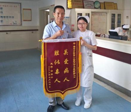 很多時候,醫(yī)護工作人員收到患者或者家屬送來的錦旗,上面寫著感謝某某主任、某某醫(yī)生及醫(yī)護人員,大家似乎都司空見慣。唯獨前不久我們科收到的一份感謝責(zé)任護士的錦旗,上面寫著“關(guān)愛病人,勝似親人”,著實讓我們護士們感動了好一陣子。這可是我們骨傷一科開展溫情服務(wù)以來責(zé)任護士收到的第一面錦旗,也是我們醫(yī)院責(zé)任護士收到的第一面錦旗,這位責(zé)任護士就是骨一科護士段亞玲。