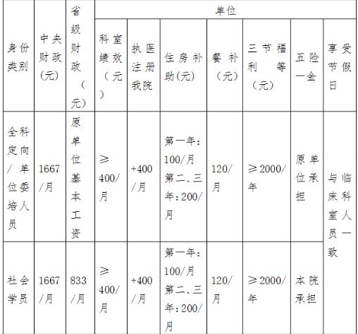 3、面向社會(huì)招收的培訓(xùn)對(duì)象與醫(yī)院簽訂培訓(xùn)協(xié)議,培訓(xùn)對(duì)象自行到當(dāng)?shù)厝瞬胖行霓k理人事代理業(yè)務(wù)。培訓(xùn)期間的生活補(bǔ)助由醫(yī)院負(fù)責(zé)發(fā)放,辦理五險(xiǎn)一金外,醫(yī)院還發(fā)放餐補(bǔ)、春節(jié)福利等,并提供住宿補(bǔ)貼。社會(huì)化招錄人員培訓(xùn)結(jié)束后自行擇業(yè)。