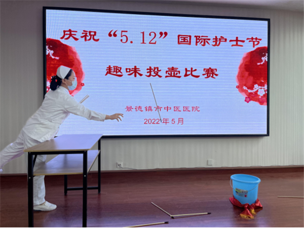 為營造我院良好的工作氛圍和醫(yī)院文化,豐富護理人員文化生活,增強集體榮譽感,加強護理人員之間的交流,5月10日下午護理部在緊張工作之余組織了一場別開生面的趣味投壺游戲比賽。