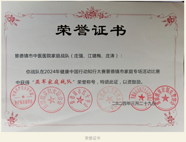我院莊強家庭在2024年江西省健康中國行動知行大賽景德鎮(zhèn)家庭專場活動中榮獲全市第二名