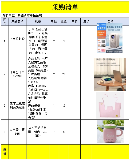 景德鎮(zhèn)市中醫(yī)醫(yī)院釆購項目詢價公告(8.13)